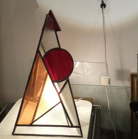 Un miroir assez spécial, qui paraît cassée même en bon état, et qui était en très mauvais état et une lampe contemporaine, elle aussi endommagée.