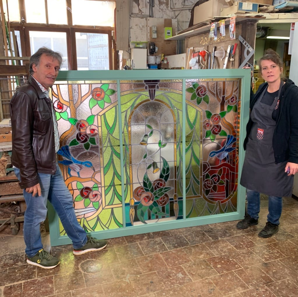 Paul Azzopardi a acheté ce triptyque de vitraux aux enchères dans l’émission « Affaire Conclue » sur France 2. Au départ, ils étaient posés dans des grandes portes en bois.