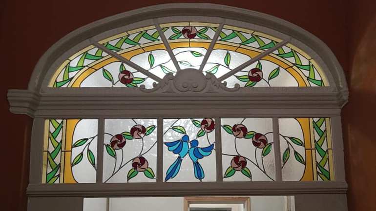 Création d’un ensemble de vitraux pour une belle imposte dans un appartement haussmannien classé, à la Ciotat.