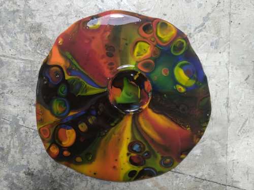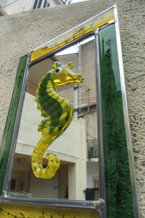 Un défit…une oeuvre…comme vous voulez!! Ce volcan est fabriqué avec du verre fondu pour la lave et du verre peint pour la pierre. J’ai utilisé la technique de montage « Tiffany » faire un volume en vitrail, particulièrement quand il n’est pas régulier tient de l’exploit! En écoutant ‘Live at Pompeï » de Pink Floyd, cela devient possible!! […]