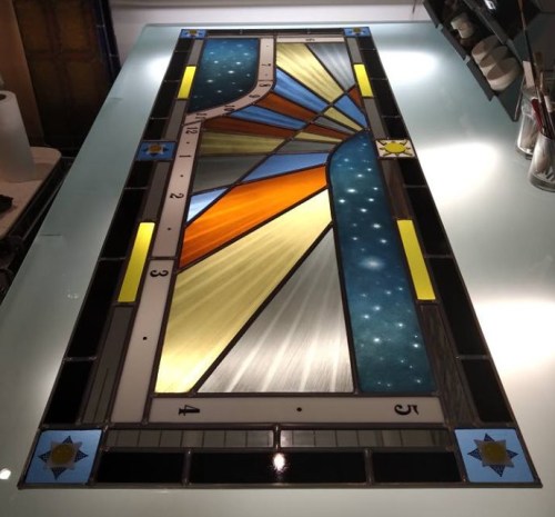 Création de vitraux pour les portes d’un appartement dans le 6eme à Marseille. Le thème était les montagnes du Pérou. La cliente voulait quelque chose d’assez naïf et coloré. Ci-dessous la maquette puis la réalisation. La cliente a finalement choisi de faire la lune bleue, ce qui apporte une touche d’originalité en plus.